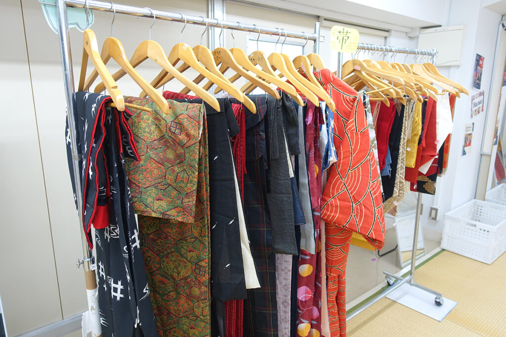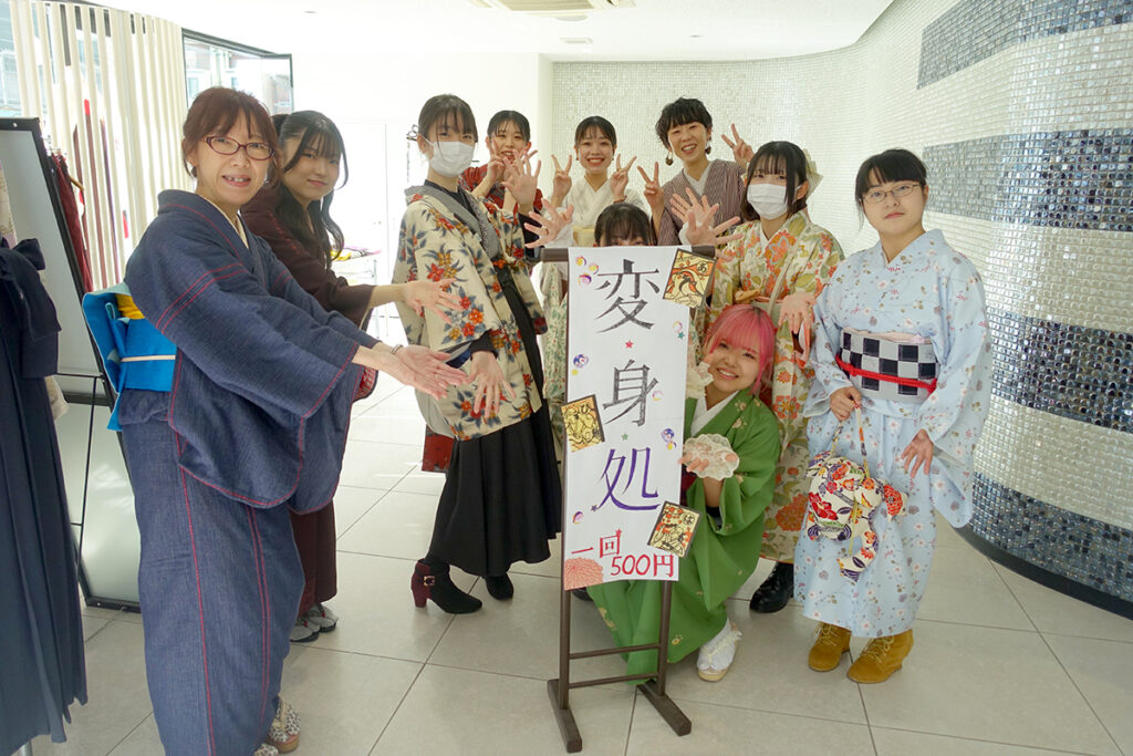 きもの校では、1階の『袴着付け体験ブース』でお出迎え。
