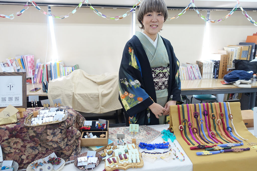 『卒業生ブース』では、卒業生が制作したアクセサリーや水引小物を販売。