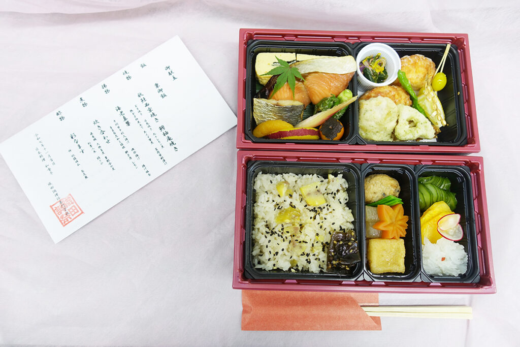 日本料理「秋の松花堂弁当」には、一品一品それぞれ思いが込められた秋を感じられる繊細な料理がたくさん。