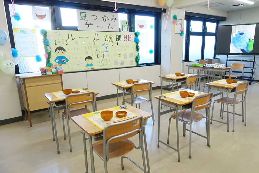 2階では、投扇興やかるたなど『お座敷遊びブース』。畳の教室はきもの校ならでは!