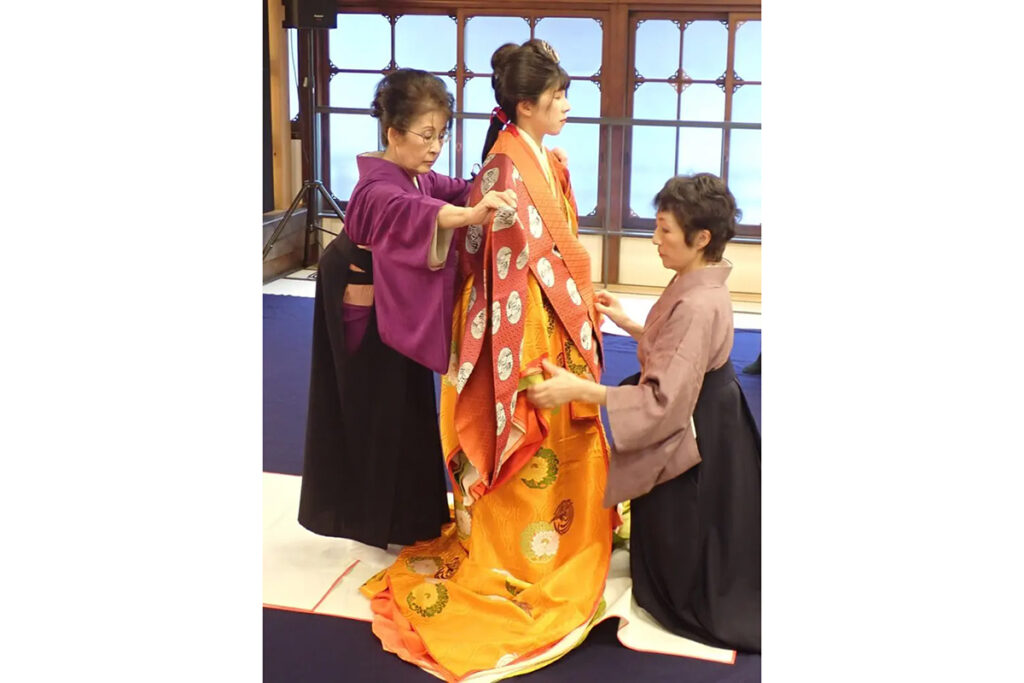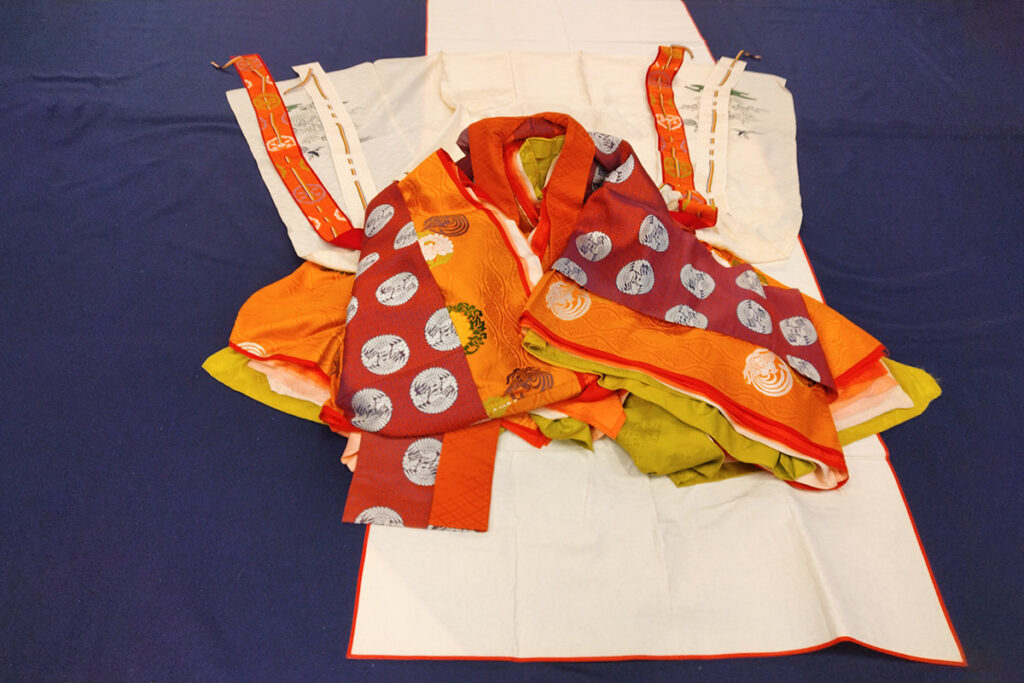 着装することを「お服上げ」といい、着付けをする人のことを衣紋者(えもんじゃ)といいます。